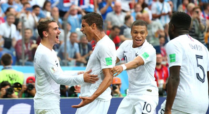 Η Γαλλία επικράτησε με 2-0 της Ουρουγουάης με γκολ των Βαράν και Γκριζμάν και προκρίθηκε στα ημιτελικά, του Παγκοσμίου Κυπέλλου, περιμένοντας τον νικητή του ζευγαριού μεταξύ Βραζιλίας και Βελγίου.