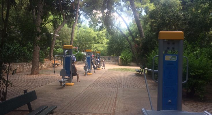 Άνθρωποι κάθε ηλικίας βρίσκονται στο άλσος Παγκρατίου, έχοντας την ευκαιρία να αθληθούν στα σύγχρονα όργανα γυμναστικής εντελώς δωρεάν.