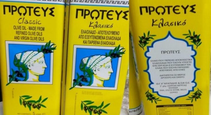 Συγκεκριμένα, πρόκειται για το προϊόν, αποτελούμενο από εξευγενισμένα ελαιόλαδα και παρθένα ελαιόλαδα, με την εμπορική ονομασία «ΠΡΩΤΕΥΣ Κλασικό» σε μεταλλική συσκευασία των 5 λίτρων με ημερομηνία παραγωγής την 1η Μαρτίου 2018, LOT 12/11013/206 και ανάλωση κατά προτίμηση πριν από την 1η Σεπτεμβρίου του 2019, το οποίο τυποποιείται από την επιχείρηση «Θ. ΧΑΤΖΗΑΡΑΠΙΔΗΣ ΚΑΙ ΣΙΑ Ο.Ε.», στο 3ο χλμ Σερρών- Νιγρίτας, με αλφαριθμητικό αριθμό μονάδας τυποποίησης EL 40201.