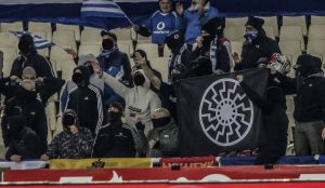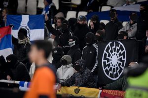 Σύμφωνα με φωτογραφικά στιγμιότυπα κατά τη διάρκεια του αγώνα, αυτή η ομάδα νεαρών ύψωσε μια σημαία με τον «Μαύρο Ήλιο», που είναι παραδοσιακό σύμβολο των SS που χρησιμοποιούνταν σε τελετές μύησης στο εθνικοσοσιαλιστικό κόμμα, ενώ σε φωτογραφία που δημοσίευσε ο λογαριασμός «XYZ Contagion», φαίνεται ξεκάθαρα ότι υπάρχουν και ναζιστικοί χαιρετισμοί. Αξίζει να σημειωθεί, μάλιστα, ότι οι ίδιοι είχαν και σημαία της Χρυσής Αυγής.