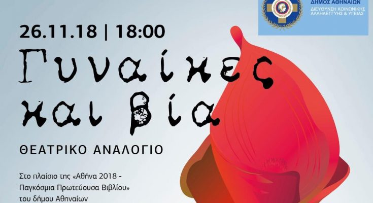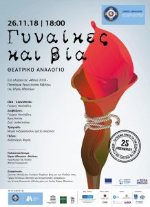 Με αφορμή την Παγκόσμια Ημέρα Εξάλειψης της Βίας κατά των Γυναικών, ο Ξενώνας Φιλοξενίας Γυναικών Θυμάτων Βίας του δήμου Αθηναίων πραγματοποιεί στις 6 το απόγευμα εκδήλωση με θέμα «Γυναίκες και Βία – Θεατρικό Αναλόγιο» στο Πολιτιστικό κέντρο του δήμου Αθηναίων “Μελίνα”.