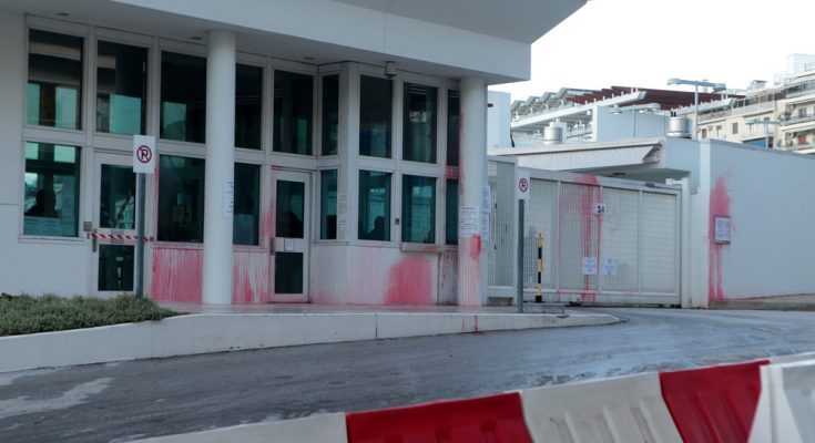 Ομάδα περίπου δέκα ατόμων, τα οποία επέβαιναν σε μηχανάκια έριξαν μπαλόνια και μπουκάλια με μπογιά με αποτέλεσμα να προκαλέσουν απλά φθορές στον τοίχο.
