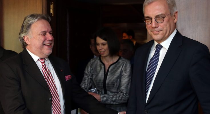 Ο αναπληρωτής υπουργός Εξωτερικών Γιώργος Κατρούγκαλος συναντήθηκε το απόγευμα της Παρασκευής με τον υφυπουργό Εξωτερικών της Ρωσίας Αλεξάντερ Γκρούσκο. Όπως τόνισε ο κ Κατρούγκαλος συμφώνησαν ότι οι δύο χώρες είναι προσηλωμένες στο διεθνές δίκαιο και πως δεν πρέπει να υπάρχει ανάμειξη στα εσωτερικά τρίτων χωρών.