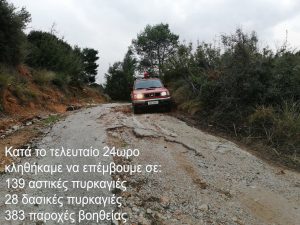 Η Υπηρεσία σε όλη την επικράτεια, δέχθηκε 147 κλήσεις για κοπές δέντρων και 109 κλήσεις για απομακρύνσεις αντικειμένων.