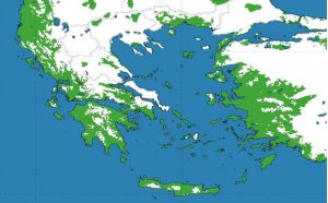 Το 35% της χερσαίας έκτασης της Ελλάδας, έφθασε η έκταση της χιονοκάλυψης λόγω «Ωκεανίδας», σύμφωνα με τα δορυφορικά δεδομένα που επεξεργάστηκε το Εθνικό Αστεροσκοπείο Αθηνών (meteo.gr).