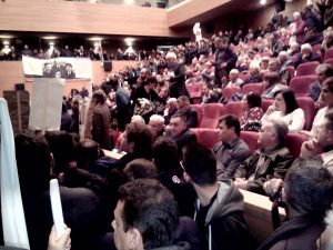 Ματαιώθηκε η αποψινή εκδήλωση για τα 100 χρόνια από την ίδρυση της ΓΣΕΕ στο Πολιτιστικό Κέντρο Καλαμάτας, μετά την εισβολή περίπου 1.000 στελεχών του ΠΑΜΕ και την αποχώρηση του προεδρείου της ΓΣΕΕ.