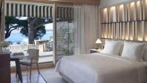 Ετσι, η τιµή ανά διανυκτέρευση για ένα δωµάτιο 40 τ.µ. µε θέα στον κήπο ξεκινά από 365 ευρώ και αυξάνεται σε 440 ευρώ για δωµάτιο µε θέα στη θάλασσα και σε περίπου 700 ευρώ για µία junior σουίτα.