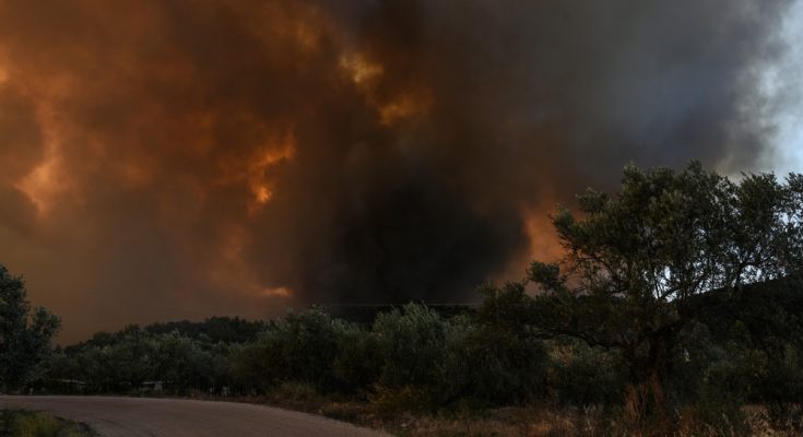 Για την κατάσβεσή της επιχειρούν στην περιοχή 80 πυροσβέστες με 35 οχήματα καθώς και πεζοπόρο τμήμα με 21 άτομα.