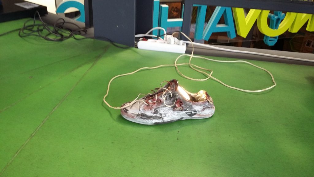Γλυπτά φτιαγμένα από παλιά παπούτσια, στο πλαίσιο του Athens Science Festival απο το καλλιτεχνικό εργαστήριο «Samaras Shoe Art s. 1999» στο κτίριο του INNOVATHENS στον πρώτο όροφο.