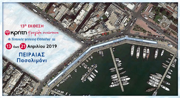 Η 13η Έκθεση Τοπικών Προϊόντων & Υπηρεσιών «Κρήτη: Η Μεγάλη Συνάντηση & Toπικές Γεύσεις Ελλάδας» πραγματοποιείται από 13 έως τις 21 Απριλίου 2019, στον Πειραιά.