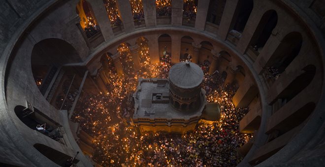 Σε κλίμα κατάνυξης και λαμπρότητας, τελέστηκε στον κατάμεστο Ιερό Ναό της Αναστάσεως στα Ιεροσόλυμα η ιερουργία της Αφής του Αγίου Φωτός.