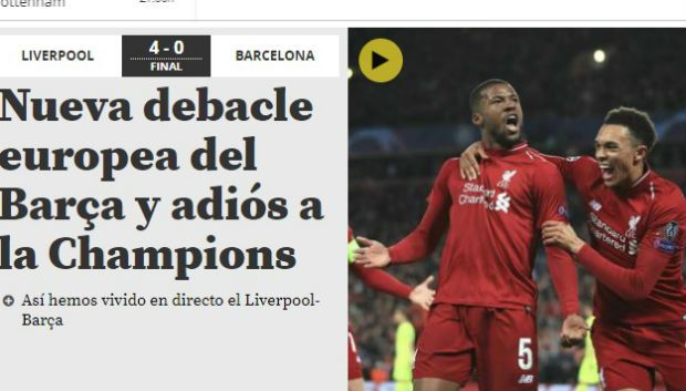 H Λίβερπουλ απέκλεισε με… πάταγο την Μπαρτσελόνα στο Άνφιλντ και ο ισπανικός Τύπος δεν χαρίστηκε στους μπλαουγκράνα, κάτι που είναι εμφανές στα πρωτοσέλιδα του τύπου.