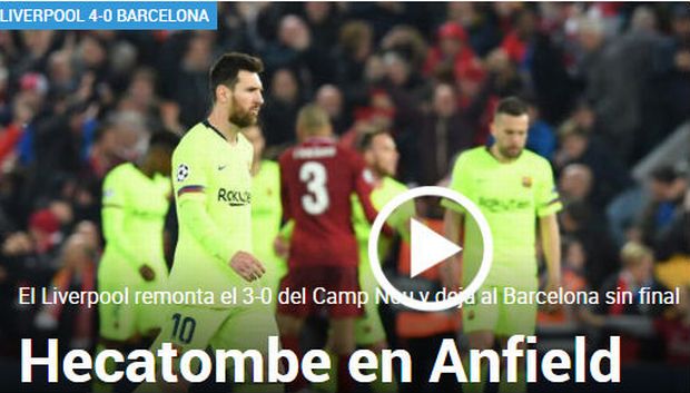 «Eκατόμβη στο Άνφιλντ», είναι ο τίτλος της πρώτου θέματος στην ιστοσελίδα της Marca