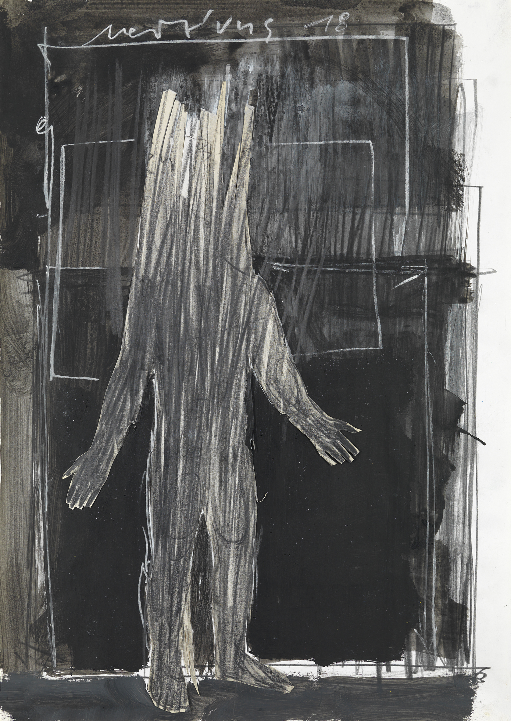 Είκοσι τέσσερις μεγάλου μεγέθους πίνακες της τελευταίας διετίας, οι οποίοι συνοδεύονται από τέσσερις παλαιότερους μαζί με σειρά ογδόντα πέντε σχεδίων, που αποδεικνύουν πως η ίδια θεματική απασχολεί τον καλλιτέχνη, με διαφορετικό κάθε φορά αποτέλεσμα, τα τελευταία τριάντα χρόνια.