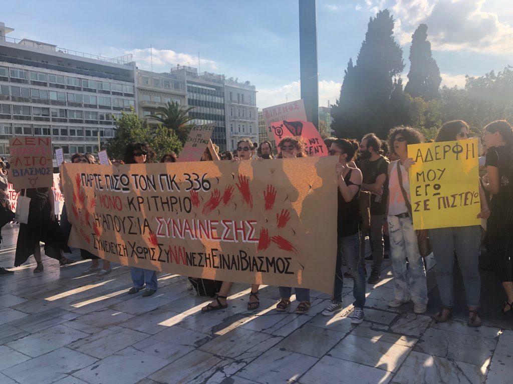 Συγκέντρωση στην πλατεία Συντάγματος πραγματοποίησαν συλλογικότητες του γυναικείου κινήματος, για την έκφραση της αντίθεσής τους στην τροποποίηση του Ποινικού Κώδικα που μετατρέπει μορφές βιασμού από κακουργηματικές σε πλημμεληματικές.