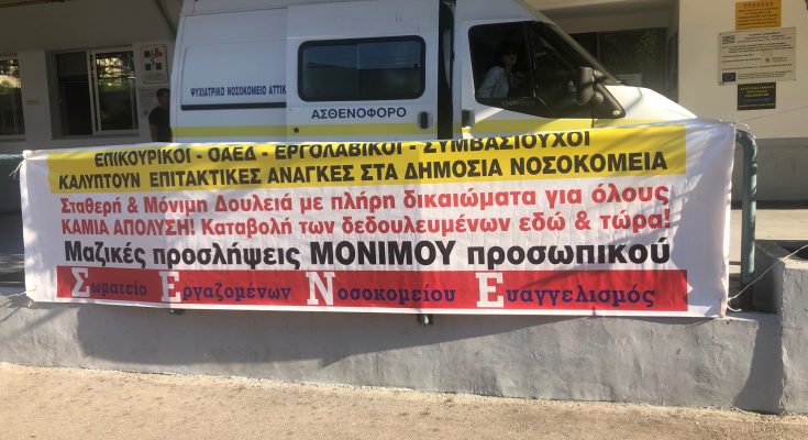Συγκέντρωση διαμαρτυρίας πραγματοποιούν στα Τμήματα Επειγόντων Περιστατικών οι εργαζόμενοι ως εργολαβικό προσωπικό στο Νοσοκομείο «Ευαγγελισμός».
