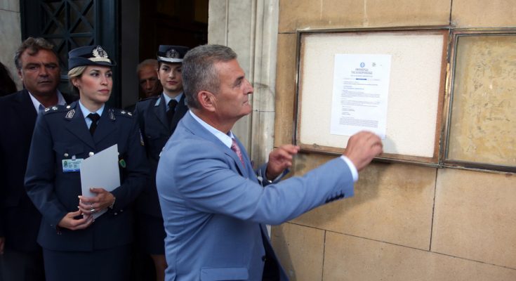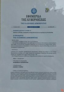 Το Προεδρικό Διάταγμα θυροκόλλησε στην ανατολική είσοδο του Μεγάρου του Κοινοβουλίου, ο φρούραρχος της Βουλής, υποστράτηγος, Κωνσταντίνος Κυριαζόπουλος.