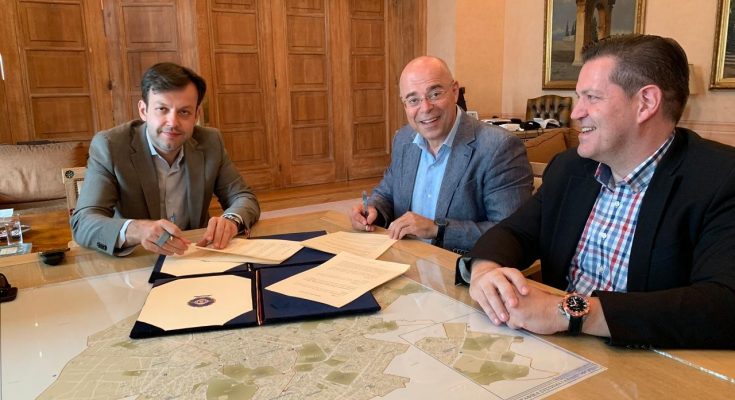 Ο δήμαρχος Αθηναίων κ. Γιώργος Μπρούλιας και ο πρόεδρος του Συμβολαιογραφικού Συλλόγου Εφετείων Αθηνών, Πειραιώς, Αιγαίου & Δωδεκανήσου, κ. Γιώργος Ρούσκας, προχώρησαν στην υπογραφή του σχετικού μνημονίου συνεργασίας που πρόκειται να εφαρμοστεί από τον Σεπτέμβριο, παρουσία της αντιδημάρχου Εμπορίου Ανάπτυξης και Διαχείρισης Κοινοχρήστων Χώρων, κυρίας Νέλλης Παπαχελά, του γενικού γραμματέα του Συμβολαιογραφικού Συλλόγου κ. Θεόδωρου Χαλκίδη και του Τμηματάρχη Ανταποδοτικών Τελών και ΤΑΠ του δήμου Αθηναίων, κ. Δημήτρη Μπαγλαούρα.