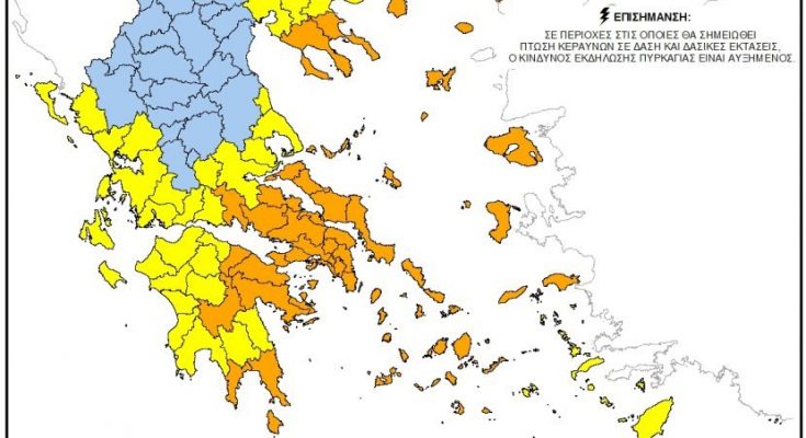 Οι θυελλώδεις άνεμοι αυξάνουν τον κίνδυνο δημιουργίας και εξάπλωσης πυρκαγιάς στα νησιά του Αιγαίου και τα ανατολικά ηπειρωτικά τμήματα, σύμφωνα με τη μετεωρολογική υπηρεσία meteo του Εθνικού Αστεροσκοπείου Αθηνών.