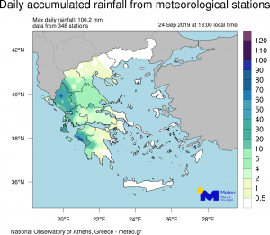 Χαρακτηριστική είναι η περίπτωση του σταθμού του Πύργου Ηλείας, όπου καταγράφηκαν 100 χιλιοστά βροχής.