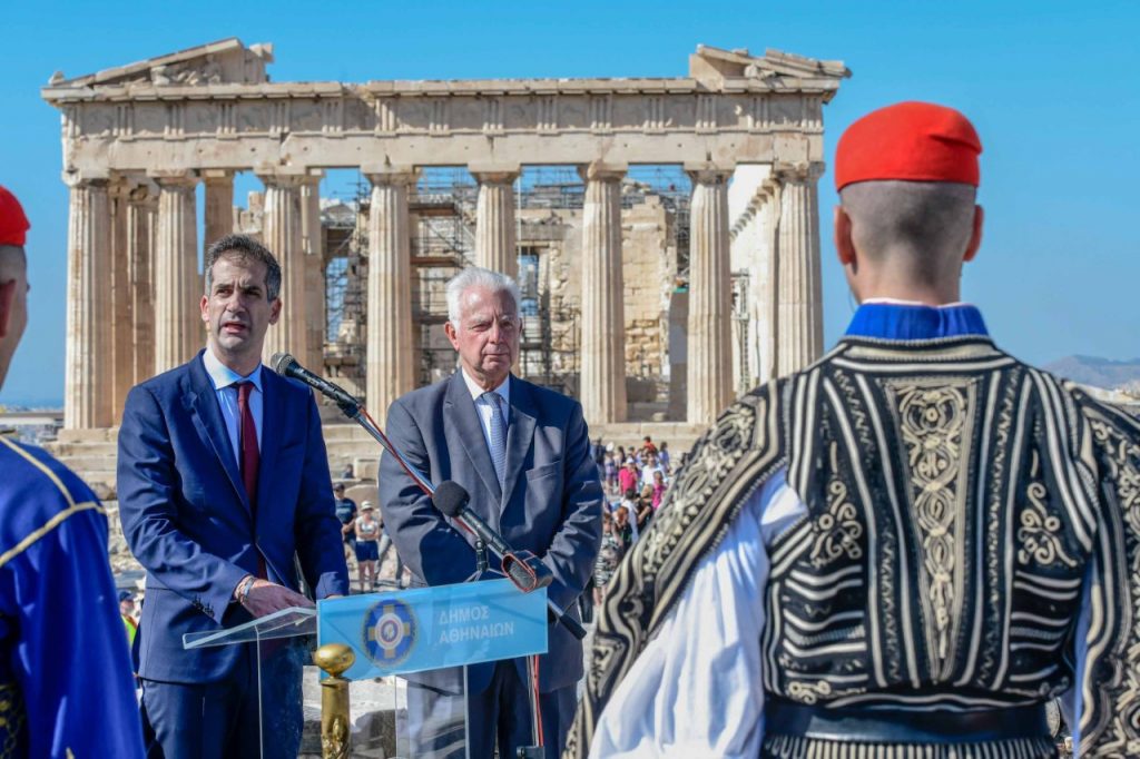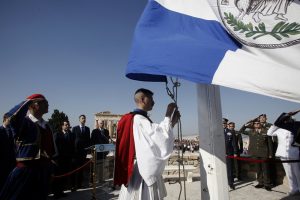Μήνυμα ενότητας έστειλαν ο αντιπρόεδρος της κυβέρνησης Παναγιώτης Πικραμμένος και ο δήμαρχος Αθηναίων, Κώστας Μπακογιάννης, από τον Ιερό Βράχο της Ακρόπολης όπου πραγματοποιήθηκε νωρίτερα η έπαρση της σημαίας για τα 75 χρόνια Απελευθέρωσης της Αθήνας από τις ναζιστικές δυνάμεις κατοχής.