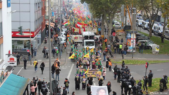 Περίπου 10.000 άνθρωποι διαδήλωσαν ειρηνικά το Σάββατο στο κέντρο της Κολωνίας ενάντια στην τουρκική στρατιωτική εισβολή στη βορειοανατολική Συρία.