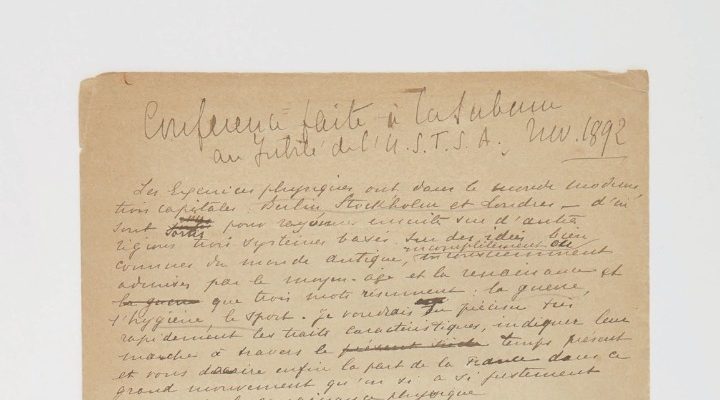 Το πρωτότυπο χειρόγραφο του μανιφέστο των Ολυμπιακών Αγώνων, γραμμένο το 1892 από τον Πιέρ Ντε Κουμπερτέν, θα δημοπρατηθεί στα τέλη Δεκεμβρίου στην Νέα Υόρκη, όπως ανακοινώθηκε από τον οίκο δημοπρασιών «Sotheby’s», ο οποίος εκθέτει για πρώτη φορά στο κοινό, το συγκεκριμένο έγγραφο, στο Λος Άντζελες.
