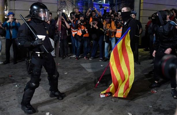 Δεκάδες αστυνομικοί των μονάδων αντιμετώπισης ταραχών με ασπίδες και όπλα και με τη συνδρομή αστυνομικών βαν εφόρμησαν απόψε για να διαλύσουν το πλήθος των διαδηλωτών υπέρ της ανεξαρτησίας της Καταλονίας, οι οποίοι είχαν συγκεντρωθεί έξω από το αρχηγείο της αστυνομίας στο κέντρο της Βαρκελώνης.