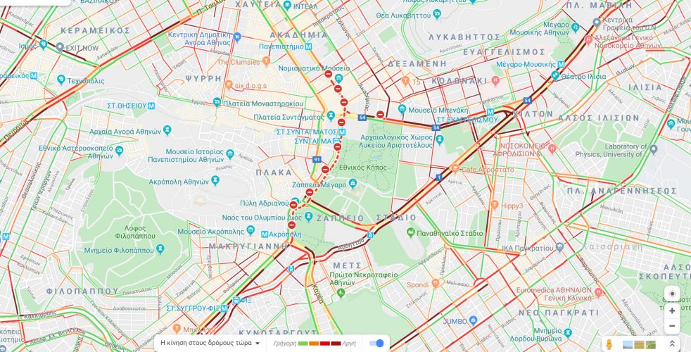 Ειδικότερα, «στο κόκκινο» βρίσκεται η Αθηνών-Λαμίας στο ρεύμα ανόδου από τη γέφυρα Κολοκυνθούς μέχρι και την Πειραιώς αλλά και στο κέντρο της Αθήνας.