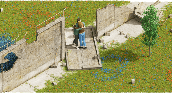 Το δυτικό Βερολίνο, το οποίο όσο η πόλη ήταν μοιρασμένη ζούσε σε ένα ιδιότυπο καθεστώς ελευθερίας και φόβου, θα φιλοξενήσει στην κοσμοπολίτικη λεωφόρο Kurfuerstendamm αφηγήσεις οικογενειών που έζησαν για χρόνια στις δυο πλευρές του Τείχους και επανενώθηκαν στις 9 Νοεμβρίου του 1989.