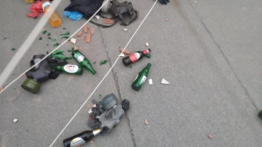 Οι συλληφθέντες, σύμφωνα με την αστυνομία, βρίσκονταν σε δώμα της ταράτσας της πολυκατοικίας όπου βρέθηκαν και κατασχέθηκαν βόμβες μολότωφ, γάντια, αντιασφυξιογόνες μάσκες, πέτρες και άλλα αντικείμενα.