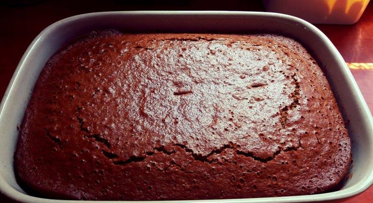 Όταν έχουμε ένα πυκνόρρευστο χυλό, τον αδειάζουμε στο λαδωμένο ταψάκι μας και το βάζουμε στον φούρνο για μια ώρα περίπου.