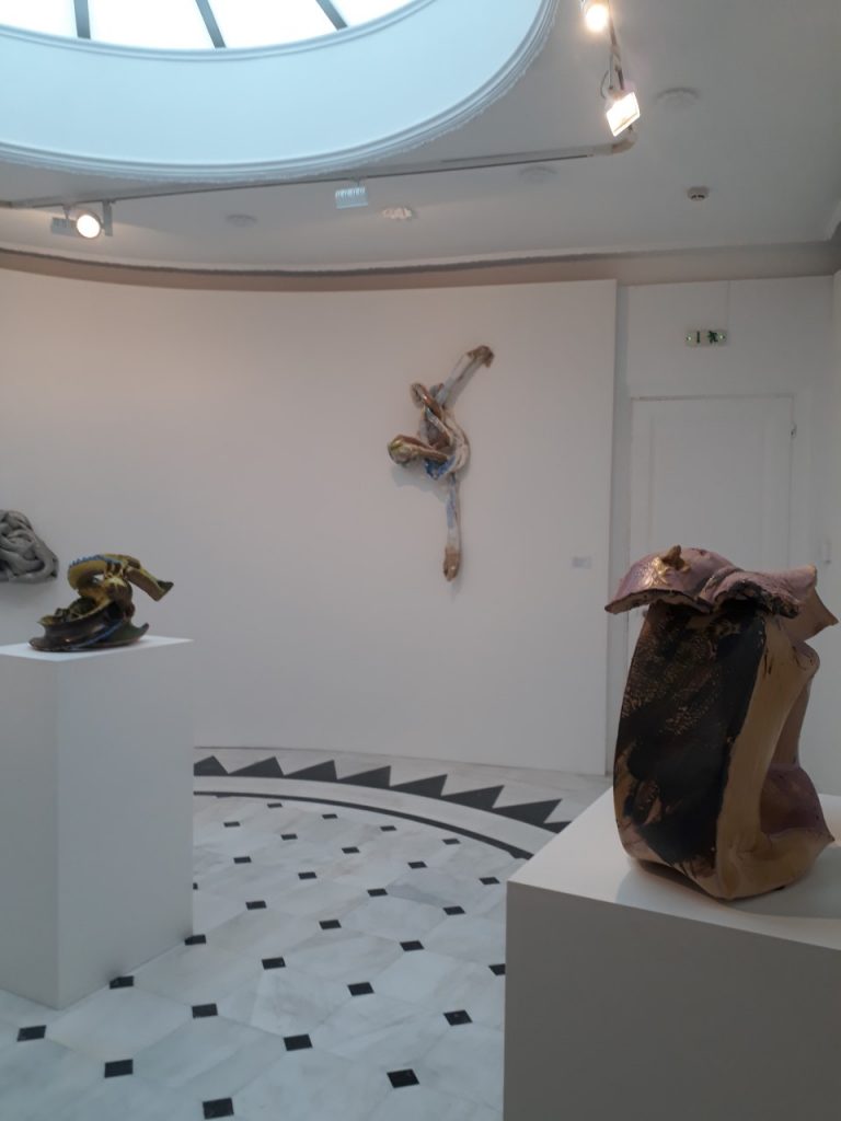 Η έκθεση περιλαμβάνει τρία σημαντικά ιστορικά εκθέματα που παραχώρησε το Μουσείο Κυκλαδικής Τέχνης, και τα οποία συνομιλούν με την τέχνη της αρμονικά.