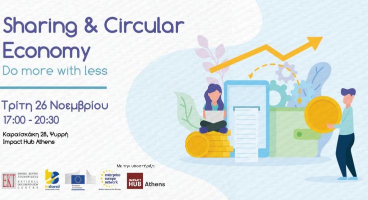 Ο λόγος για το εργαστήριο με τίτλο «Sharing & Circular Economy: Do more with less», το οποίο θα πραγματοποιηθεί την Τρίτη 26 Νοεμβρίου 2019, στις 17:00, από το Εθνικό Κέντρο Τεκμηρίωσης και Ηλεκτρονικού Περιεχομένου, στο πλαίσιο του έργου BeShared, με την υποστήριξη του Impact Hub, φορέα της Οικονομίας Διαμοιρασμού.