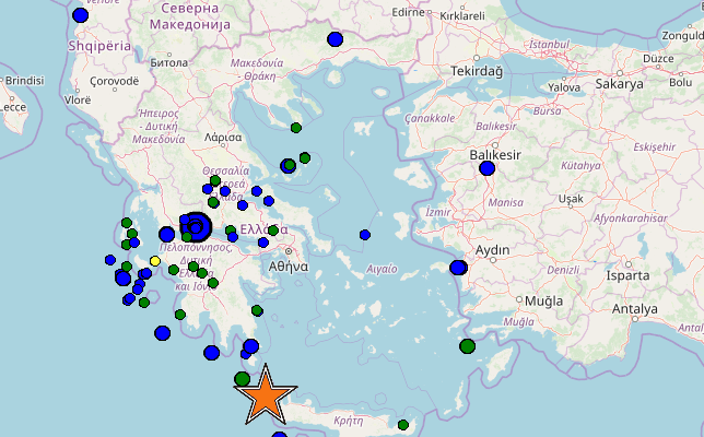 Ειδικότερα, σύμφωνα με το Γεωδυναμικό Ινστιτούτο του Εθνικού Αστεροσκοπείου Αθηνών η σειμική δόνηση έγινε στις 9:23 20 χλμ νότια των Αντικυθήρων, 258 νοτιοανατολικά της Αθήνας.