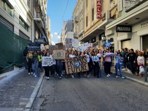 Περίπου 500 μαθητές, μαζί με περιβαλλοντικές οργανώσεις, συγκεντρώθηκαν στην πλατεία Συντάγματος το μεσημέρι για να διαδηλώσουν ενάντια στην περιβαλλοντική κρίση, ενώ στη συνέχεια έκαναν πορεία μέχρι το Μοναστηράκι.