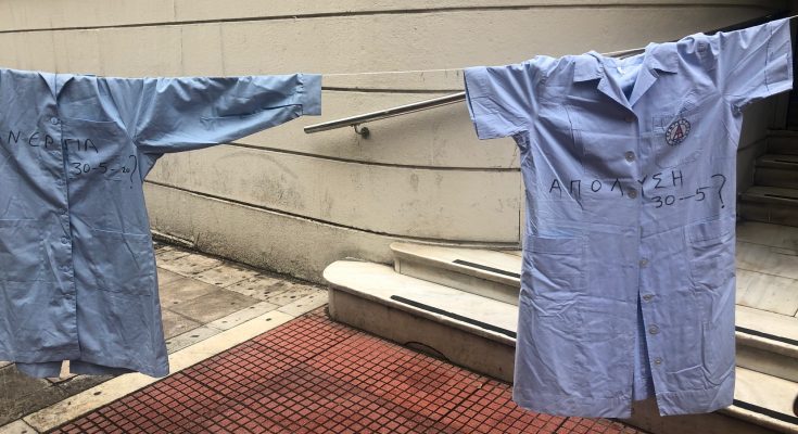 Σε ένδειξη διαμαρτυρίας η ΠΟΕΔΗΝ και οι καθαρίστριες έστησαν ένα χριστουγεννιάτικο δέντρο έξω από το υπουργείο Υγείας και το στόλισαν με μικρά μπαλόνια που θύμιζαν χριστουγεννιάτικες μπάλες και που έγραφαν πάνω τις λέξεις ανεργία-απόλυση. Στην βάση του δέντρου είχαν τοποθετήσει για τον ίδιο λόγο συμβολικά φραντζόλες με ψωμιά. Παράλληλα, μπροστά από την είσοδο είχαν κρεμάσει τις ποδιές τους. Τέλος, οι καθαρίστριες έψαλλαν επίσης τα χριστουγεννιάτικα κάλαντα στον υπουργό Υγείας.