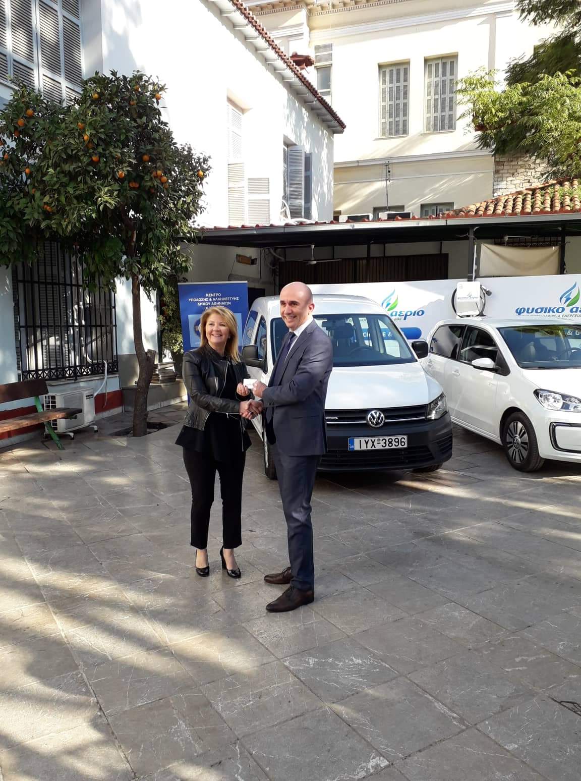 Δύο νέα οικολογικά οχήματα παραδόθηκαν στο Κέντρο Υποδοχής και Αλληλεγγύης του Δήμου Αθηναίων από την εταιρεία Kosmocar και το Φυσικό Αέριο. Πρόκειται για ένα ηλεκτρικό Volkswagen e-up! και ένα Volkswagen Caddy TGI, τα οποία βρίσκονται από το πρωί στις εγκαταστάσεις του ΚΥΑΔΑ για την ενίσχυση του έργου του.