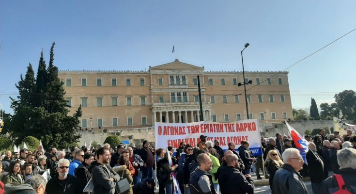 Συλλαλητήριο πραγματοποιούν οι εργαζόμενοι της ΛΑΡΚΟ από τις 11 το πρωί με συγκέντρωση στην Ομονοια και πορεία προς το Συνταγμα.