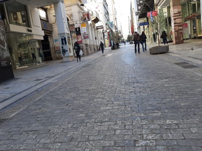Όσον αφορά τον πεζόδρομο της Ερμού, τα (αρκετά) μαγαζιά που επέλεξαν να μείνουν ανοιχτά έχουν πολύ μικρή κίνηση και ο κόσμος… περιορίζεται στο να διασχίσει τον πεζόδρομο μέχρι το Σύνταγμα ή το Μοναστηράκι.
