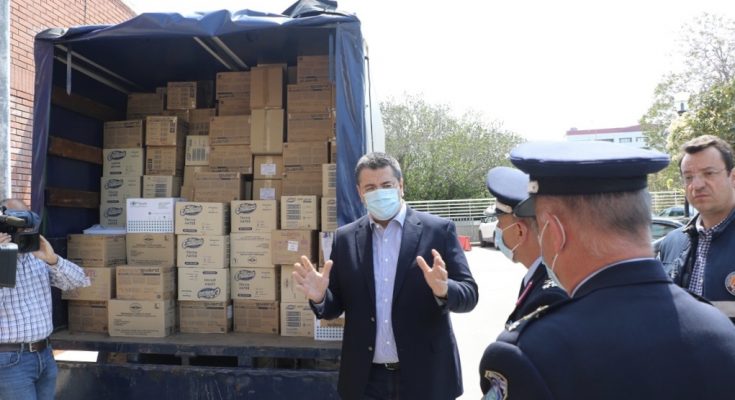 Υγειονομικό υλικό και είδη ατομικής προστασίας για τους Αστυνομικούς της Κεντρικής Μακεδονίας παρέδωσε σήμερα το μεσημέρι ο Περιφερειάρχης Κεντρικής Μακεδονίας Απόστολος Τζιτζικώστας στην ηγεσία της ΕΛΑΣ στην Κεντρική Μακεδονία.