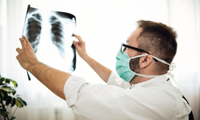 Εξέταση με προστατευτικά μέτρα γάντια μάσκα, ασπίδα σε εξέταση αναπνευστικού