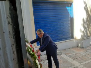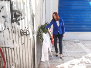 Εκ μέρους των Οικολόγων Πρασίνων την κατάθεση στεφάνου έκανε η συνεκπρόσωπος του κόμματος, Κατερίνα Ανδρικοπούλου.