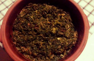 Μπακαλιάρος παστός με χόρτα και μυριστικά στον φούρνο