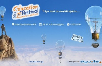 Τελευταία ημέρα σήμερα για το Education Festival 2019, μια καινοτόμο δράση, μια μοναδική εμπειρία, με...